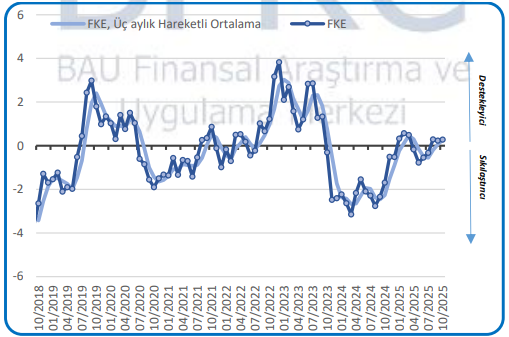 BFRC Finansal Koşullar Endeksi, TCMB’nin Temmuz ayı sonundan bu yana gerçekleştirdiği faiz indirimlerine rağmen Ağustos ayından beri sınırlı düzeyde destekleyici seviyelerde yer alıyor ve yataya yakın seyrediyor. Enflasyon görünümünde Eylül ayında izlenen bozulma sinyallerinin ekonomi programına duyulan güveni zayıflatmasıyla birlikte önümüzdeki dönemde finansal koşulların sıkılaştırıcı konuma gelme olasılığının arttığını değerlendiriyoruz.